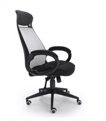 Cadeira de escritório ou diretor, alta e esbelta, a cadeira diretor Apache é o resultado bem-sucedido de anos de pesquisa em design, funcionalidade e tecnologia de ponta a serviço de ambos. Todos os seus detalhes foram cuidadosamente resolvidos. O revestimento do encosto em malha e o assento acolchoado e estofado em tecido dão um toque muito original devido à forma arredondada do encosto e à imagem moderna que transmite ao ambiente.