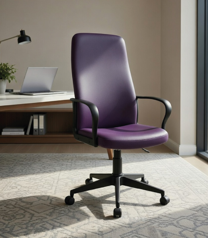 Cadeira de escritório com encosto alto, estofada e revestida integralmente. Disponível em todas as nossas cores de couro sintético Roy. Com um preço muito competitivo, esta cadeira lidera as cadeiras operacionais devido à sua estética cuidadosa, à sua estrutura interna feita de madeira compensada de faia, aos seus braços fixos com toque confortável e tudo o que é necessário para oferecer uma cadeira operacional completa com uma relação qualidade-preço aceitável. Na mesma coleção, temos a opção de cadeira giratória de encosto baixo e cadeiras de visitante.