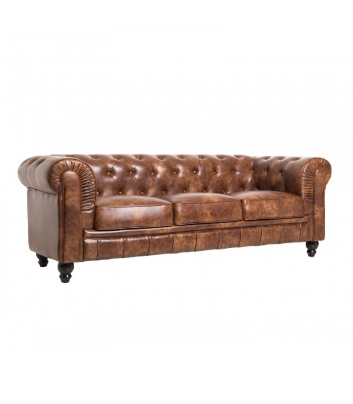 Detalles sofá de 3 plazas similpiel cuero viejo CHESTER