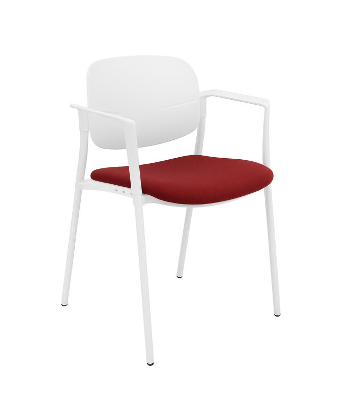 La silla Step es una silla donde el diseño, la elegancia y el confort de su asiento acolchado y tapizado textil, se combinan, creando una silla con la comodidad que ofrecen los asientos acolchados. Está fabricada en polipropileno blanco con estructura de apoyo de 4 patas también en blanco. Lleva brazos formando parte de la estructura, lo que no le impide que sea apilable, ocupando el mínimo espacio cuando no es necesario tenerlas todas en uso. Se entrega totalmente montada