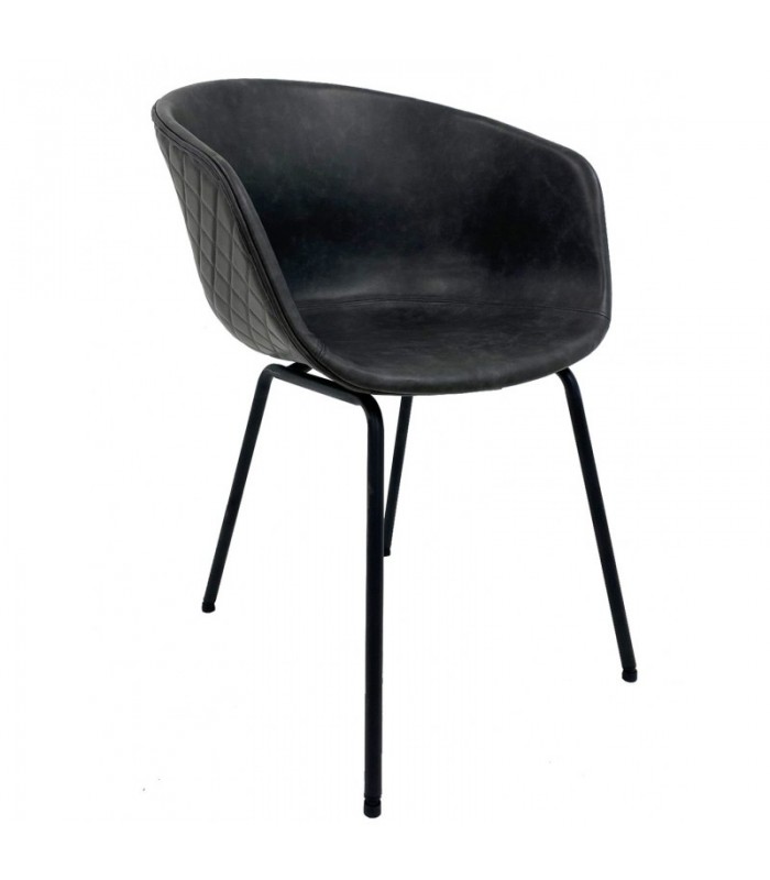 Silla de oficina, armazón metálico con acabado epoxi negro. Asiento y respaldo de forma redondeadas, tapizados en similpiel con colorido variado, exterior con costuras de rombos. Fácilmente adaptable como silla confidente o de visitas en mesas de oficina, también en mesas de reunión o salas de espera. Es una silla que encaja en el entorno laboral con una agradable sensación de que es moderna y adaptable al espacio.