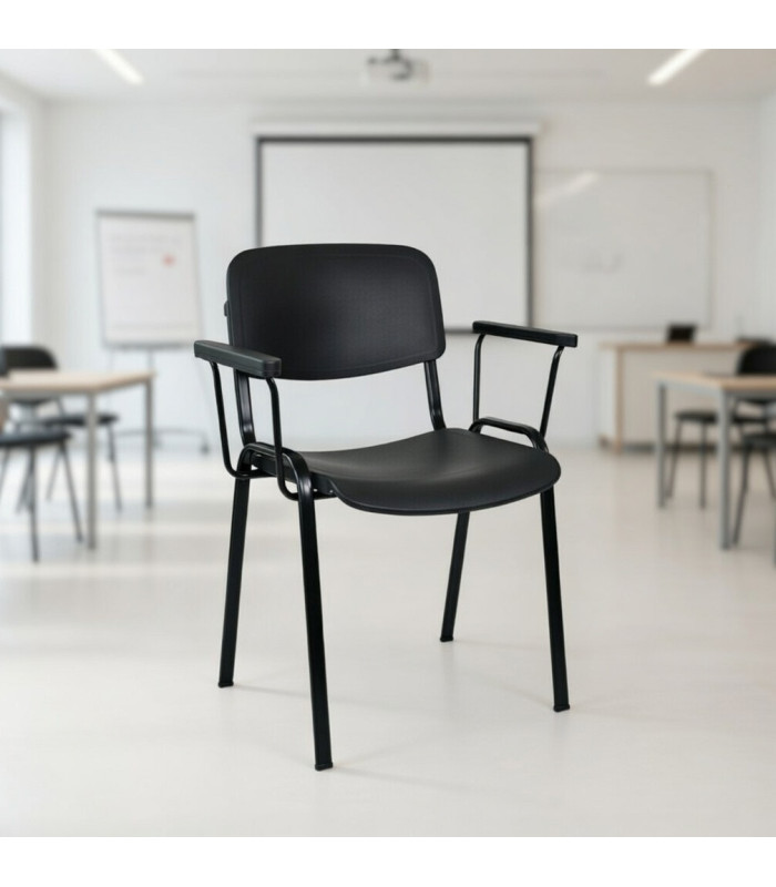 Una silla de diseño sencillo, versátil para salas de reuniones, salas de espera, conferencias, oficinas, formación y salas polivalentes. Estilo simple y minimalista que se adapta a cualquier ambiente. Fabricada en acero y pintada en epoxy negra, gris, o cromado con carcasa monocasco de polipropileno resistente. Apilable para facilitar su almacenamiento y versatilidad.