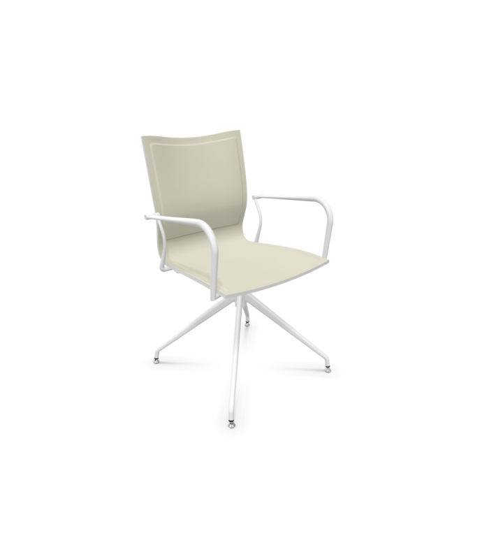 Esta silla es una solución elegante y versátil para oficinas modernas, salas de reuniones y espacios de trabajo colaborativos. Su diseño contemporáneo combina un asiento y respaldo amplios y ergonómicos que garantizan una experiencia cómoda incluso durante usos prolongados, fabricados en carcasa monoblock de madera lacada más piel tapizada. Incorpora apoyabrazos integrados que aportan mayor confort y una base de acero blanco. giratoria. con auto-retorno de gran estabilidad que asegura resistencia y durabilidad en el día a día. Gracias a sus materiales de alta calidad y a sus líneas limpias y profesionales, la silla IKARA se integra perfectamente en entornos corporativos, despachos y espacios contract, aportando funcionalidad, estilo y una imagen cuidada que refuerza el diseño del espacio.