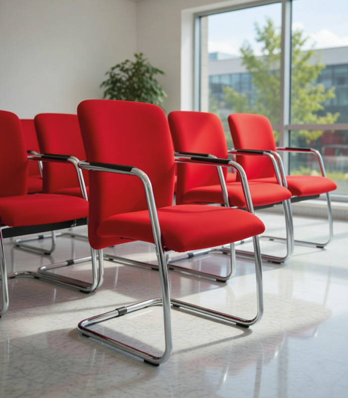 Perfecta silla para uso como confidente y para complementar espacios colectivos como salas de espera o recepción. Una gran respaldo alto, acolchado y tapizado, al igual que el asiento, le aportan una comodidad poco usual en este tipo de sillas destinadas a su uso como complementaria en la oficina o empresa. La base de patín cromada hace que la silla se ajuste al peso del usuario, por lo que es muy confortable. El tapizado es en textil serie Basic, con un colorido variado entre colores oscuros y cálidos con otros más modernos y atractivos.