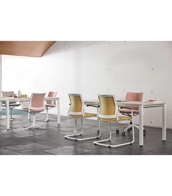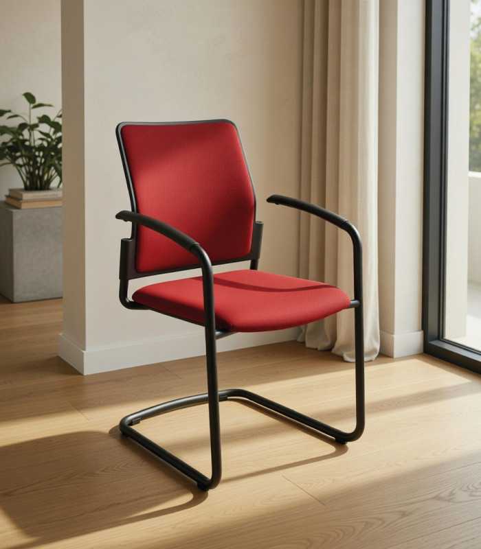 Silla de diseño moderno ideal para oficinas, salas de espera, aulas y espacios profesionales. Dispone de asiento y respaldo acolchados y tapizados en tejido Tex que proporcionan una sentada cómoda y una estética actual. Su estructura de acero en color negro ofrece estabilidad y resistencia para un uso diario, mientras que los reposabrazos de polipropileno ergonómicos mejoran la postura y el confort. Una silla funcional y versátil, fácil de integrar en distintos entornos de trabajo y zonas colectivas.