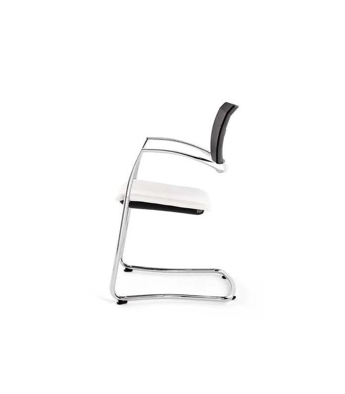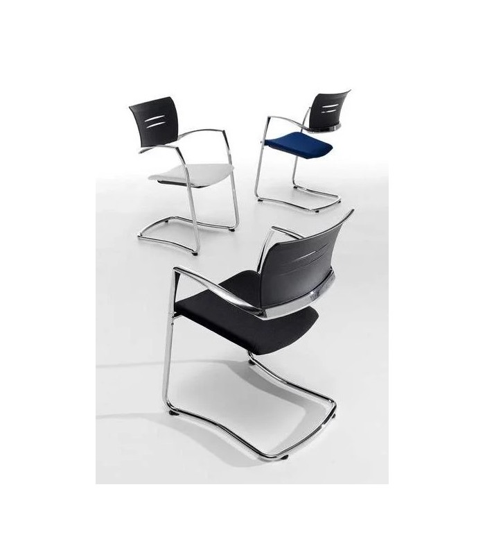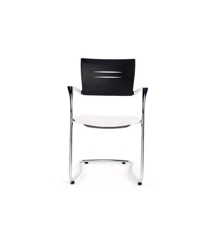 Confidente moderno y funcional. Estructura metálica cromada, que aporta resistencia. Dispone de un respaldo ergonómico de polirpopileno, que ofrece mayor soporte. El asiento acolchado y tapizado, garantiza confort durante su uso. Sus patas, de base patín, hacen que se adapte a cualquier ambiente profesional.