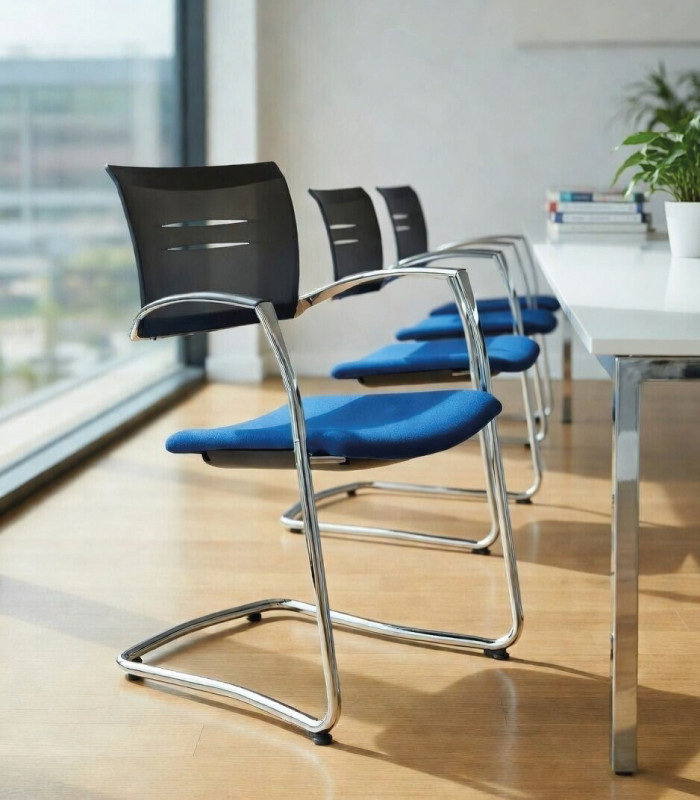 Silla confidente moderna, con un diseño elegante y funcional. Perfecta para salas de espera, oficinas, espacios de reuniones e incluso aulas de formación. Su estructura metálica cromada aporta resistencia y estabilidad, mientras que si respaldo ergonómico de polipropileno proporciona un mayor soporte. El asiento acolchado y tapizado, garantiza confort durante su uso. Sus patas, de base patín, hacen que se adapte a cualquier ambiente profesional.