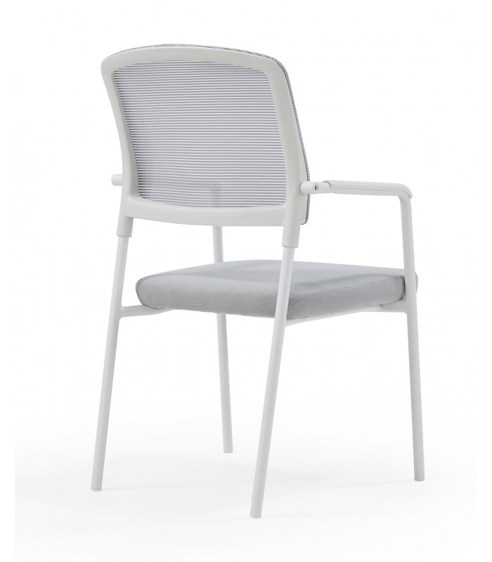 - Respaldo tapizado en malla, efecto tela, de alta resistencia y transpirabilidad. Marco del respaldo de polipropileno inyectado, en color blanco o negro.