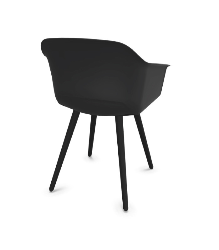 Pensada para destacar en entornos profesionales modernos, esta silla de oficina combina diseño actual y confort en una sola pieza. Su asiento, de polipropileno, envolvente con reposabrazos integrados ofrece una sensación de comodidad y soporte ideal para el uso diario. El respaldo curvo favorece una postura correcta, aportando bienestar durante reuniones o jornadas de trabajo prolongadas. Su estética elegante la hace perfecta para oficinas, salas de juntas, despachos y áreas de espera. Fabricada con materiales resistentes y de fácil mantenimiento, garantiza durabilidad y funcionalidad. Las patas sólidas de madera en color negro aportan estabilidad y un estilo contemporáneo. Una silla versátil que eleva la imagen de cualquier espacio de trabajo.