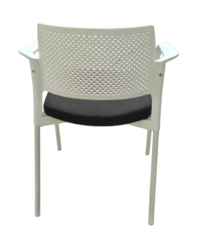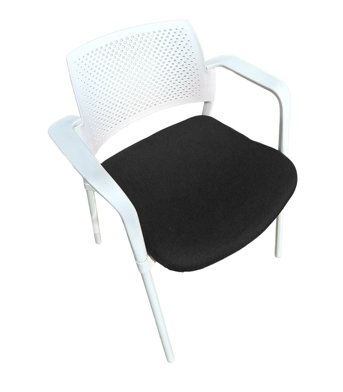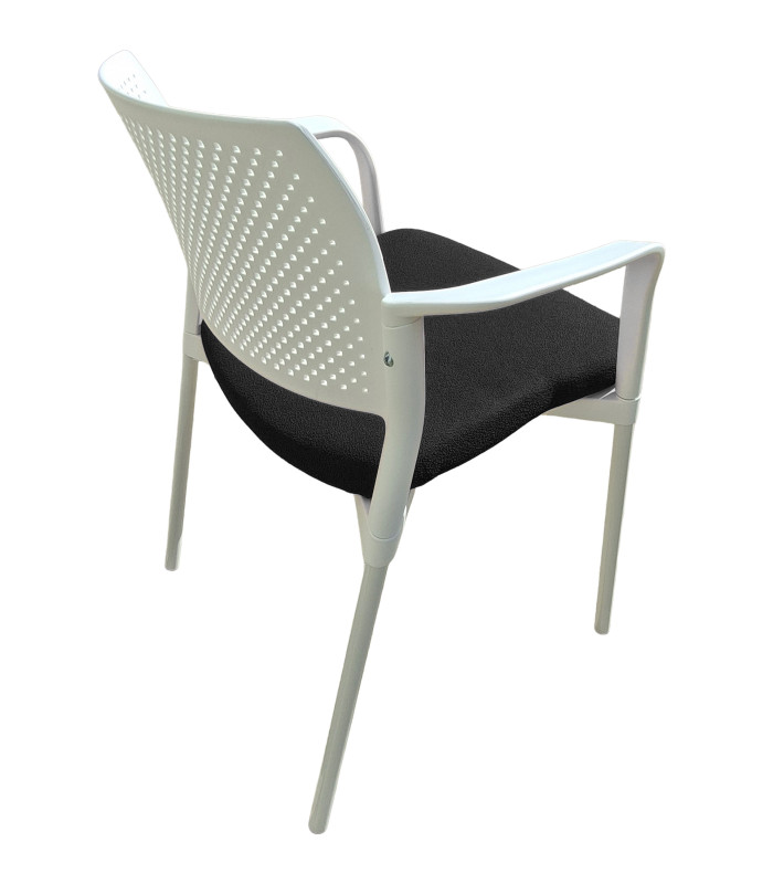 Silla de oficina ergonómica en polipropileno de alta resistencia con respaldo perforado que maximiza la ventilación y comodidad durante jornadas largas de trabajo. Su asiento acolchado y tapizado en tejido Baly ofrece un soporte mullido y elegante, ideal para oficinas modernas, salas de reuniones, recepciones o home office. Sus amplios reposabrazos y asiento contorneado ofrecen soporte óptimo. Estructura ligera, resistente y apilable, con patas metálicas robustas que garantizan estabilidad y durabilidad. Diseño contemporáneo y funcional que combina estilo profesional con practicidad, perfecta para mobiliario de oficina de calidad a precio competitivo.