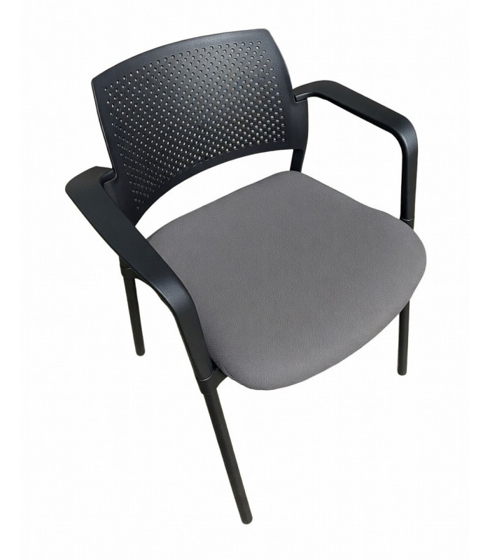 Silla de oficina ergonómica en polipropileno de alta resistencia con respaldo perforado que maximiza la ventilación y comodidad durante jornadas largas de trabajo. Su asiento acolchado y tapizado en tejido Baly ofrece un soporte mullido y elegante, ideal para oficinas modernas, salas de reuniones, recepciones o home office. Sus amplios reposabrazos y asiento contorneado ofrecen soporte óptimo. Estructura ligera, resistente y apilable, con patas metálicas robustas que garantizan estabilidad y durabilidad. Diseño contemporáneo y funcional que combina estilo profesional con practicidad, perfecta para mobiliario de oficina de calidad a precio competitivo.