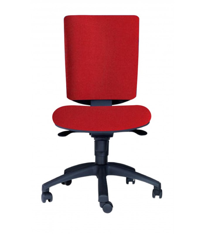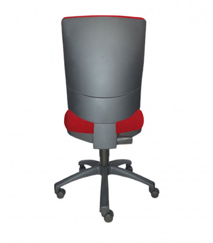 El asiento y respaldo están hechos de espuma inyectada y están tapizados en textil o polipiel. Es regulable en altura con un pistón de gas y el respaldo también se puede ajustar. No tiene brazos, pero se puede añadir la opción de brazos regulables en altura por un costo adicional. Tiene un sistema de contacto permanente y también está disponible con un sistema sincron, cuyo precio debe consultarse. El respaldo se puede ajustar en altura mediante un mecanismo de cremallera. La base está disponible en poliamida negro, pero también se puede optar por una base de aluminio pulido por un costo adicional.