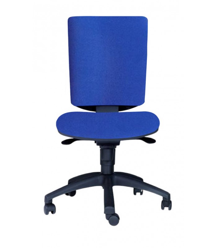 El asiento y respaldo están hechos de espuma inyectada y están tapizados en textil o polipiel. Es regulable en altura con un pistón de gas y el respaldo también se puede ajustar. No tiene brazos, pero se puede añadir la opción de brazos regulables en altura por un costo adicional. Tiene un sistema de contacto permanente y también está disponible con un sistema sincron, cuyo precio debe consultarse. El respaldo se puede ajustar en altura mediante un mecanismo de cremallera. La base está disponible en poliamida negro, pero también se puede optar por una base de aluminio pulido por un costo adicional.