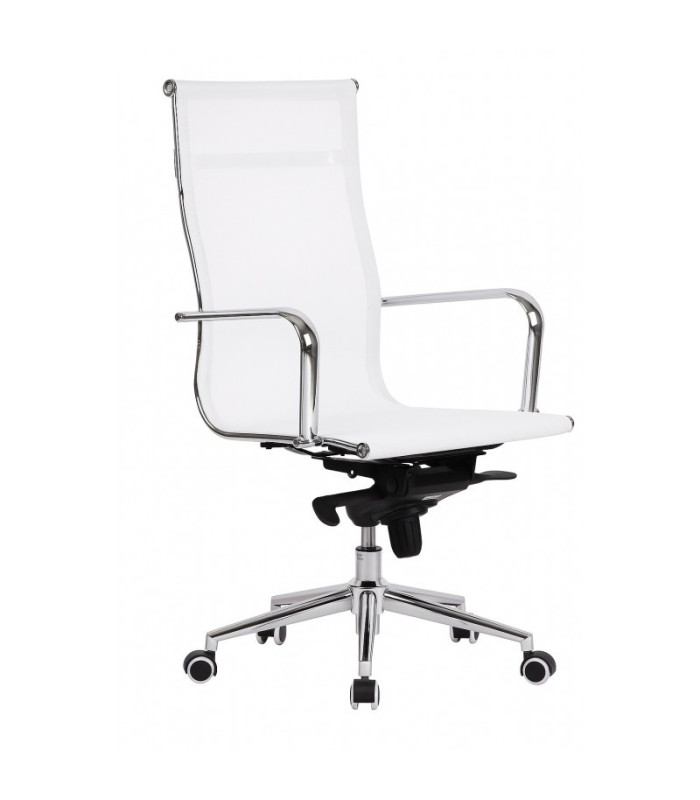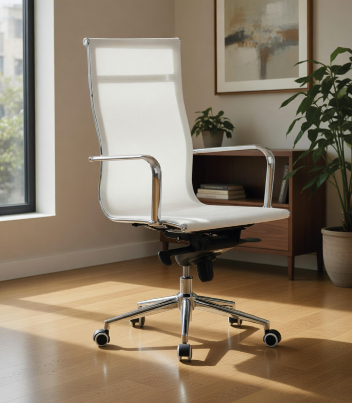 Eleva tu despacho a nivel ejecutivo con esta silla de oficina ergonómica de alta gama, la favorita de directivos y profesionales exigentes. Silla ejecutiva con respaldo alto en malla transpirable, asiento acolchado ergonómico y estructura en acero cromado brillante con brazos regulables y base de 5 radios con ruedas silenciosas. Diseñada para largas jornadas de trabajo: mecanismo sincronizado, altura regulable y soporte lumbar que garantiza comodidad y postura saludable todo el día. Perfecta para oficinas modernas, despachos directivos, puestos de mando, home office premium o salas de reuniones de alto standing.