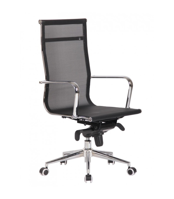 Eleva tu despacho a nivel ejecutivo con esta silla de oficina ergonómica de alta gama, la favorita de directivos y profesionales exigentes. Silla ejecutiva con respaldo alto en malla transpirable, asiento acolchado ergonómico y estructura en acero cromado brillante con brazos regulables y base de 5 radios con ruedas silenciosas. Diseñada para largas jornadas de trabajo: mecanismo sincronizado, altura regulable y soporte lumbar que garantiza comodidad y postura saludable todo el día. Perfecta para oficinas modernas, despachos directivos, puestos de mando, home office premium o salas de reuniones de alto standing.