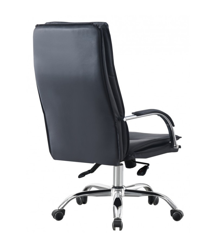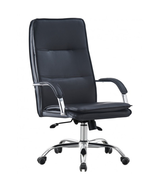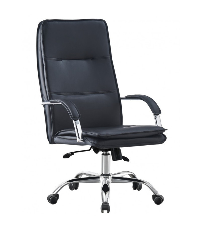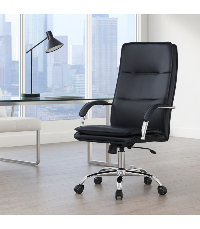 Este sillón de oficina ejecutivo combina elegancia, confort y funcionalidad en un diseño moderno ideal para despachos, salas de reuniones y espacios de trabajo profesionales. Su tapizado en similpiel aporta un toque sofisticado y fácil de limpiar, mientras que el respaldo alto ofrece un excelente soporte ergonómico que favorece la postura correcta durante largas jornadas laborales. El asiento acolchado con espuma de alta densidad garantiza comodidad prolongada, acompañado de reposabrazos tapizados que brindan un apoyo adicional. Su mecanismo multifunción permite regular la altura, la inclinación y el balanceo, adaptándose a las necesidades de cada usuario. La base de acero cromado con ruedas giratorias asegura estabilidad, resistencia y libertad de movimiento en cualquier superficie.