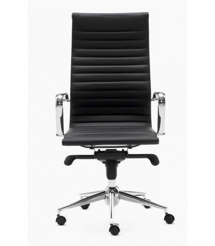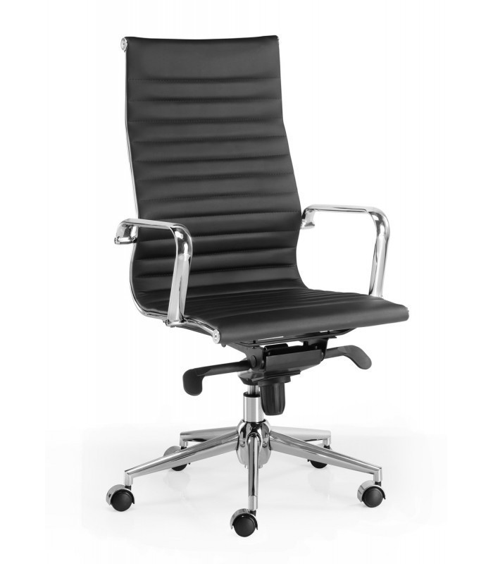 La serie de los sillones León se diferencian por su elegante acabado y extraordinaria calidad de la ecopiel con diseño en cosidos horizontales. En 4 modelos distintos, de dirección con respaldo alto. silla operativa con respaldo medido, silla con base plana y silla confidente con base de patín conforma una serie que es una apuesta ganadora en la elección de las sillas de una oficina. Sus acabado en acero cromado en estructura, base y brazos, es determinante para dar ese toque de calidad y una visión de líneas limpias y muy resistentes. La curvatura de su respaldo, para ofrecer una mejor ergonomía, completa esta serie que no deja indiferente por su aspecto y solidez.