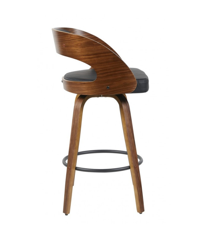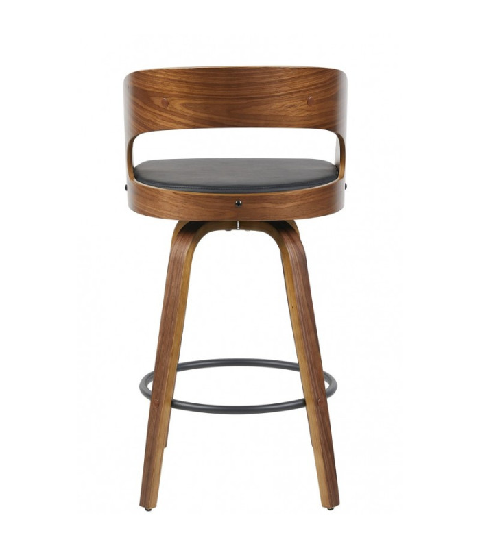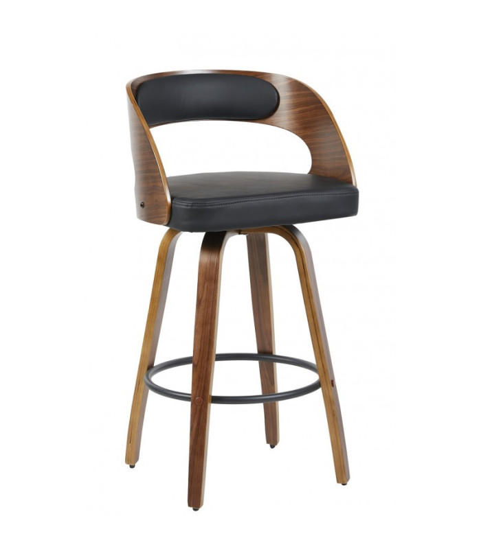 Este taburete de diseño eleva cualquier barra, isla de cocina o zona de trabajo con su sofisticado acabado en madera contrachapada y asiento tapizado en similpiel, combinando elegancia mid-century con funcionalidad moderna. Su respaldo curvo y envolvente ofrece un soporte ergonómico natural que garantiza comodidad incluso en sesiones prolongadas, mientras las patas torneadas en madera conrtachapada aportan estabilidad y un toque orgánico escandinavo que enamora a primera vista. Perfecto para mobiliario de oficina moderno, home office elevados, cocinas contemporáneas o espacios de reuniones informales, este taburete destaca por su resistencia, fácil mantenimiento y capacidad para integrarse en entornos profesionales con estilo impecable. Una pieza versátil y con gran impacto visual que transforma cualquier ambiente en un lugar productivo y con personalidad única.