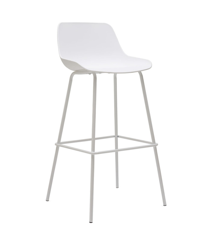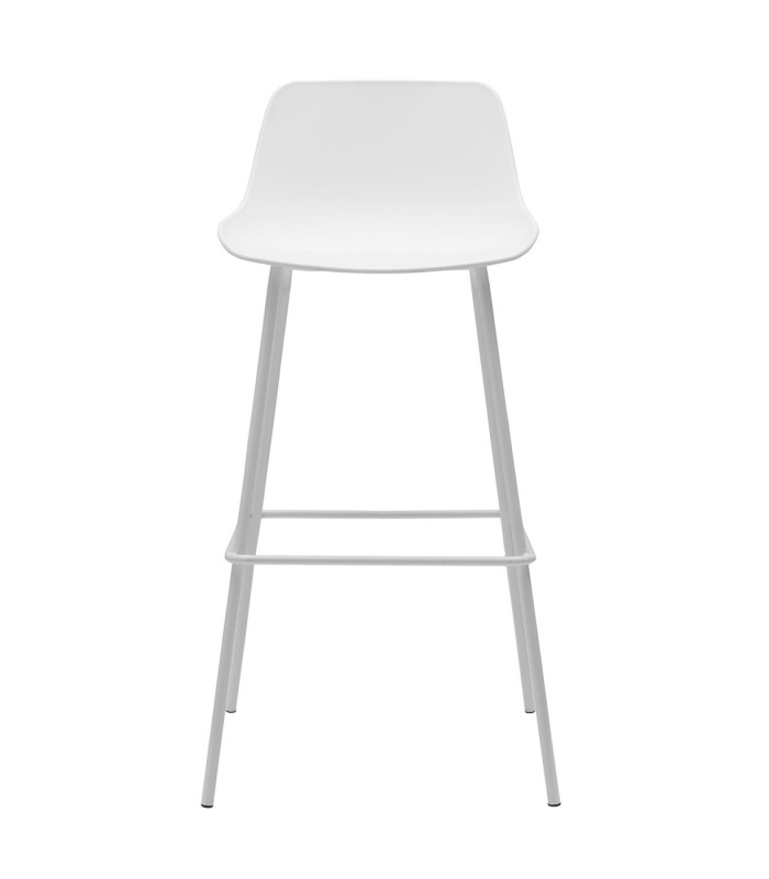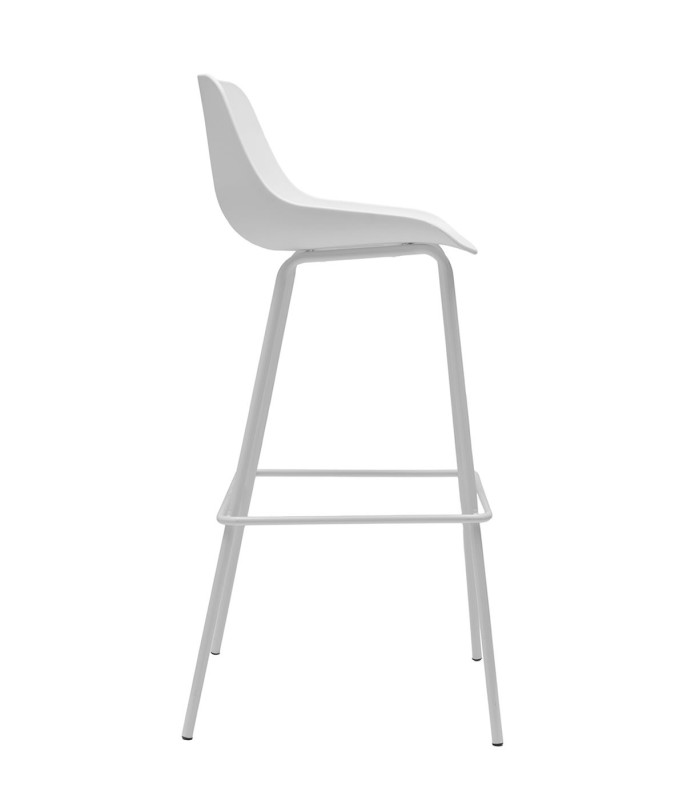 Taburete alto de diseño moderno en polipropileno, ideal para cocinas con barra, islas y espacios de hostelería. Cuenta con un asiento ergonómico de polipropileno con respaldo que ofrece comodidad y una estructura metálica resistente que garantiza estabilidad y durabilidad. Además, incluyo en reposapies integrado en la estructura. Su estilo elegante y minimalista se adapta fácilmente a ambientes contemporáneos e industriales, aportando funcionalidad y un acabado sofisticado al espacio.