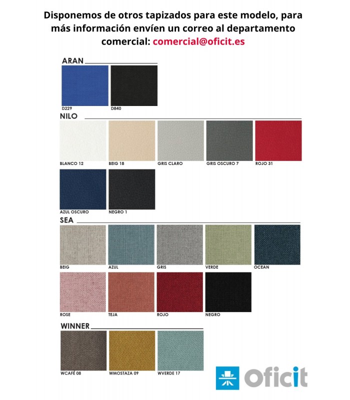 - Disponemos de otros tapizados para este modelo, para más información envíen un correo al departamento comercial: comercial@oficit.es
