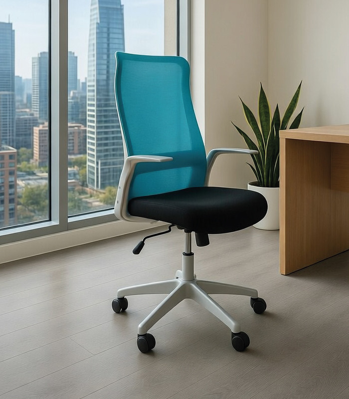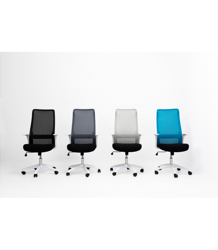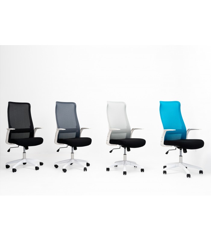 Ergonómicamente perfecto. Este modelo no deja de sorprendernos por su alto nivel de diseño difícil de igualar, disponible con estructura blanca o negra combinables con tejidos en colores de máxima actualidad. Es ideal para el trabajo diario por su respaldo elevado que le dota de una gran comodidad, destacando su tejido en malla que aporta flexibilidad, acompañando el movimiento natural del cuerpo.
