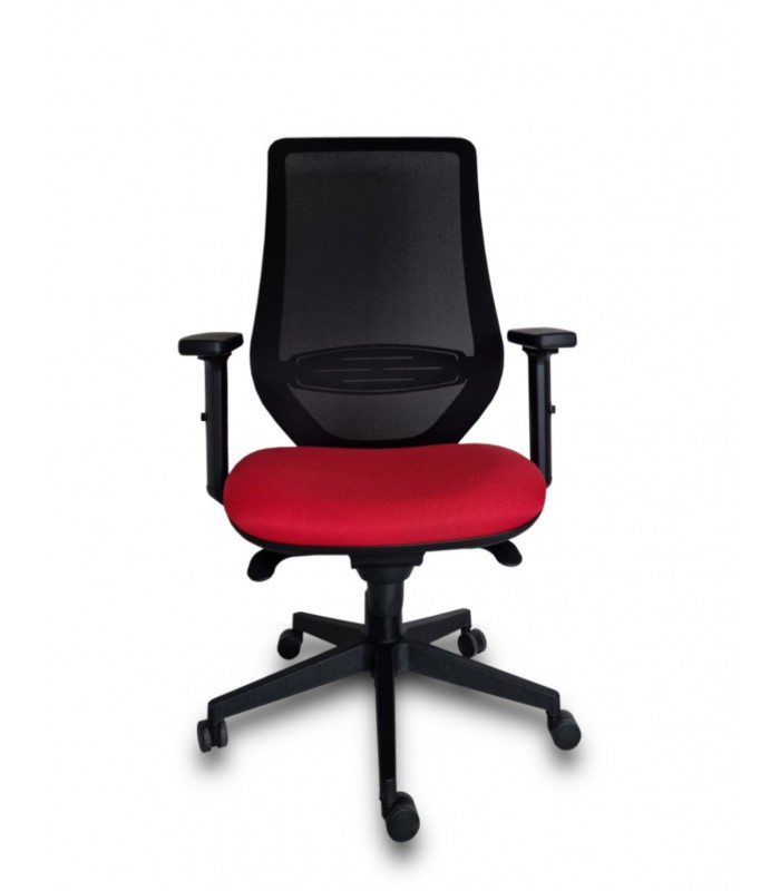 - Respaldo: Estructura de polipropileno con malla ignífuga ultra-resistente acrílica disponible en color negro. Transpirable y ergonómicamente adaptable. Incluye apoyo lumbar regulable en altura.