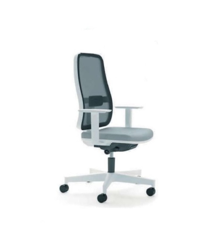 Silla giratoria de oficina. Su ergonomía y acabados la hacen una silla sencilla que garantiza el confort durante las horas de uso. Con respaldo de malla y asiento acolchado con espuma inyectada de alta densidad. El asiento, regulable en altura permiten la adaptación de la silla a la altura que cada persona necesita para trabajar adecuadamente. Un gran sillón giratorio con un precio excelente, que hace que el trabajo continuado en la oficina sea más cómodo. Carcasa disponible en blanco o negro. Brazos de poliamida negra regulables en altura. Fabricación nacional.