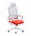- Tapizado del respaldo en malla con diseño horizontal de color negro, asiento en tejido acrílico rojo.