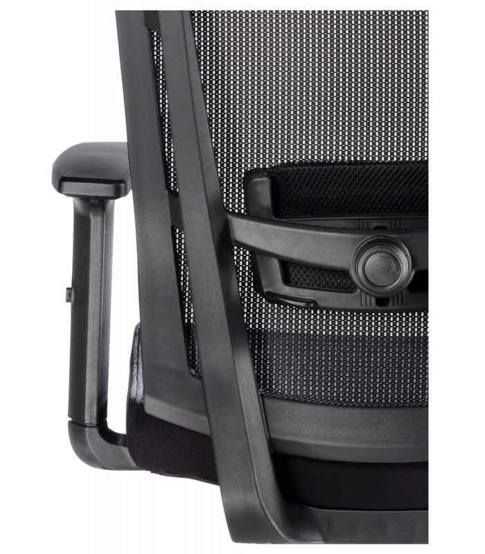 - Soporte lumbar independiente acolchado con regulaciones de altura y profundidad.