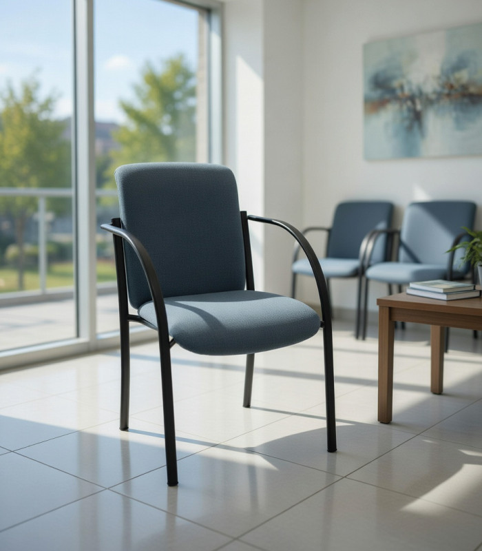Con una estructura en la que los brazos van integrados en ella, es una silla que aporta un extra de seguridad y fortaleza. El asiento y respaldo alto están acolchados y tapizados en textiles de gran calidad, con un extraordinario colorido, moderno y que puede complacer todas las necesidades de tapizado de una silla de este tipo, bien para su uso como silla de oficina confidente, como para su uso en salas de reunión, zonas comunes, recepciones o cualquier espacio en el que una silla cómoda y de buena apariencia sea necesaria. Añade el extra de que es una silla apilable. Disponible en tapizado textil Basic en varios colores.