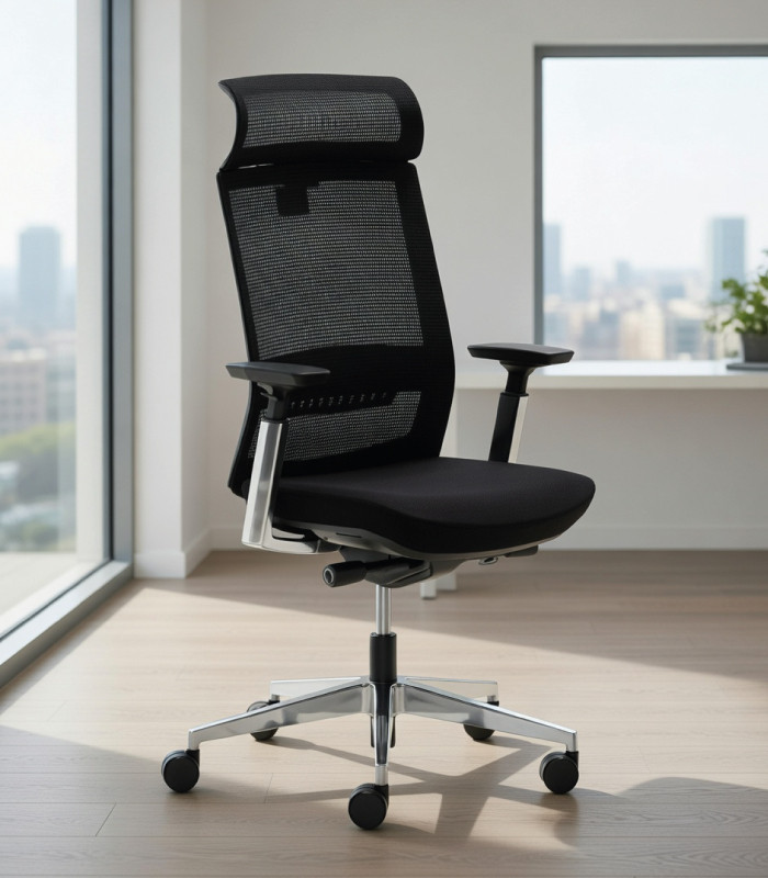Sillón giratorio para despacho. Su elegancia y las prestaciones de serie, lo sitúan entre los modelos de dirección más solicitados. La silla que mejor une estética y confort. Terminaciones de alta calidad y mecanismos avanzados que consiguen la mayor ergonomía para que esta silla de oficina se adapte de la mejor forma a lo que necesita el usuario. Conseguir adaptar los mecanismos de ergonomía que ofrece, es el mejor detalle para sacar partido a todo lo que ofrece este giratorio de alta gama. (En la ficha del producto se incluye un video de YouTube con las prestaciones ergonómicas).
