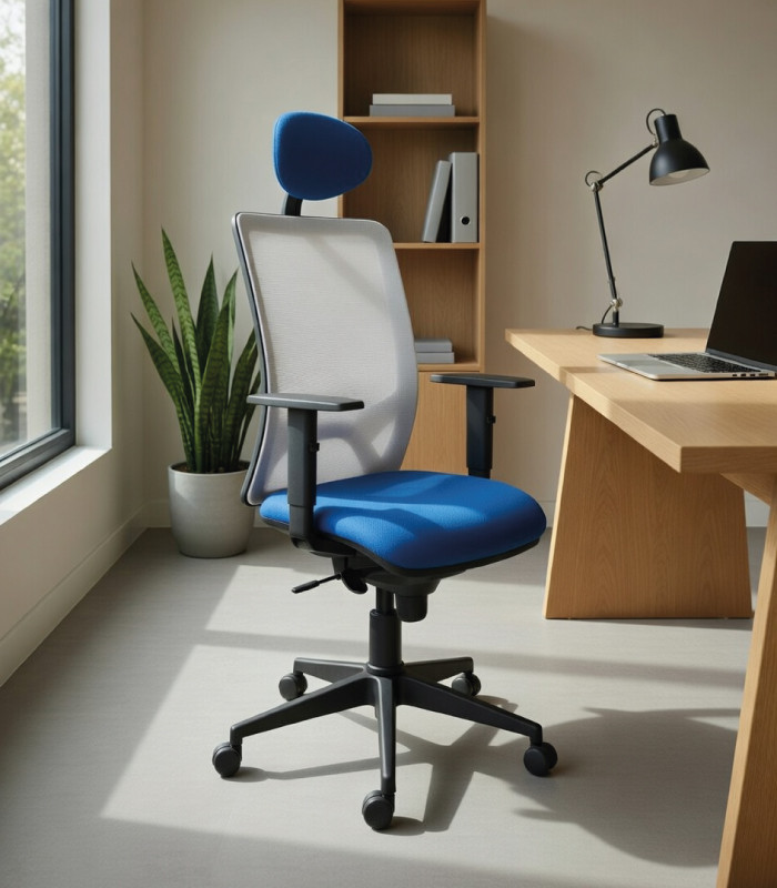 La silla operativa CHAPLIN CABEZAL es un modelo ergonómico y sofisticado que ofrece comodidad y estilo en entornos de trabajo. Con un diseño contemporáneo y características ajustables, proporciona un soporte óptimo para largas horas de trabajo. Un diseño ergonómico y versátil la hace ser en una opción atractiva para oficinas y espacios laborales. Con un resistente respaldo de malla con cabecero incorporado, y colorido a elegir, un asiento con buen acolchado y tapizado en textil de gran resistencia al uso también ofrece colorido a elegir. Una silla sin duda muy recomendable por su buen precio.