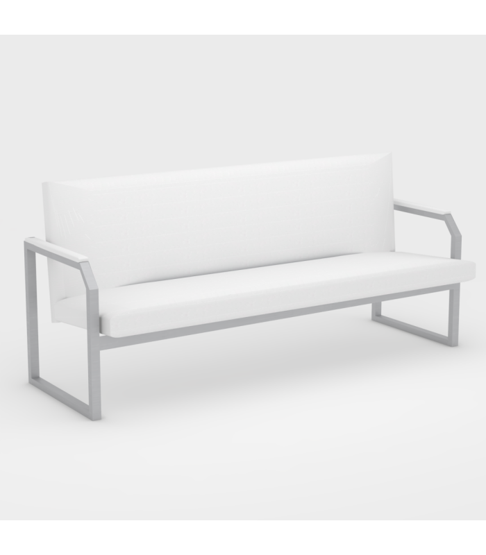 Sofá de 3 plazas para salas de espera o despacho, tapizado en polipiel con colorido a elegir, moderno y atractivo. De líneas fluidas y minimalistas que marcan la diferencia. Solución perfecta para zonas de espera, descanso y reunión. El uso de sofá, en conjunto con módulos de 1 y 2 plazas a juego