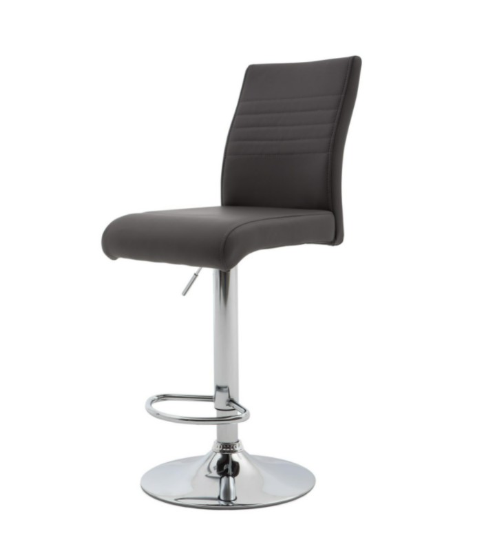 Este taburete es una pieza a la cabeza de la vanguardia. Perfecto en forma y concepto; con asiento y respaldo acolchados y tapizados en eco-piel. Base cromada con reposapiés y sistema de elevación mediante pistón largo de gas. Es una apuesta segura en la instalación que precise del uso de taburetes, genial por donde se mire.