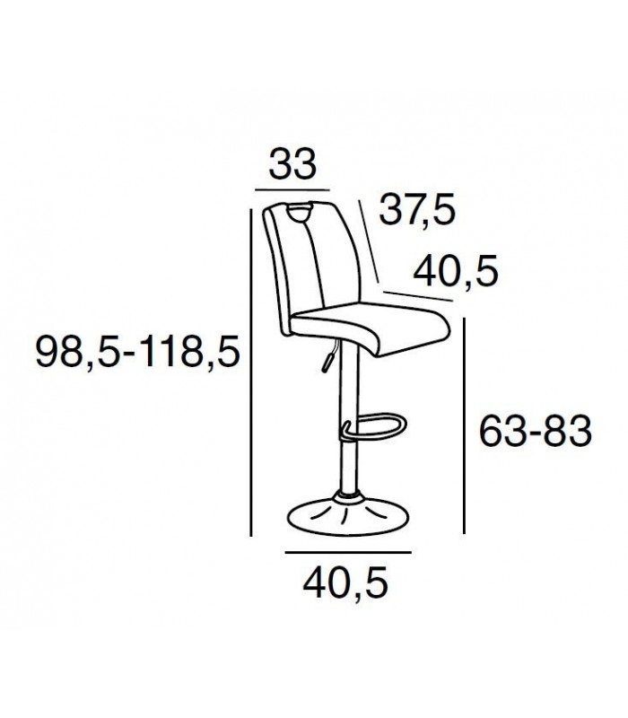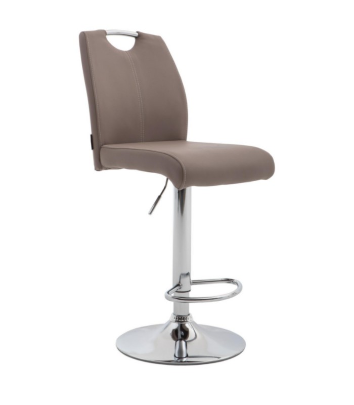 Taburete regulable en altura de impecable aspecto y gran personalidad. Elegante y estilizado en sus formas curvas y un detalle cromado en su respaldo que lo dota de una estética contemporánea. Base cromada con reposapiés y sistema de elevación mediante pistón largo de gas. Asiento tapizado en eco piel de primera calidad.