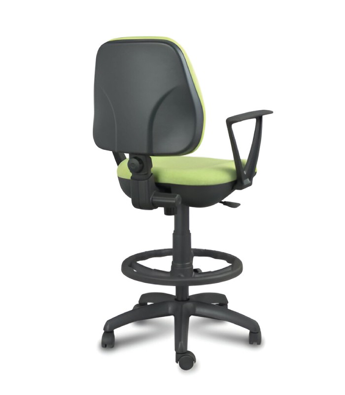 Este taburete es la opción ideal para quienes buscan comodidad y funcionalidad en su espacio de trabajo. Su asiento y respaldo están tapizados en tejido One, ofreciendo un acabado agradable al tacto, y rellenos con espuma de alta densidad. Cuenta con un sistema de ajuste de altura que, junto con la base de ruedas, permiten regular la posición del taburete de manera sencilla. Además, sus reposapies y reposabrazos, favorecen a una postura ergonómica. Ideal para oficinas, laboratorios, colectividades, formación e incluso fábricas. Colorido disponible a elegir.